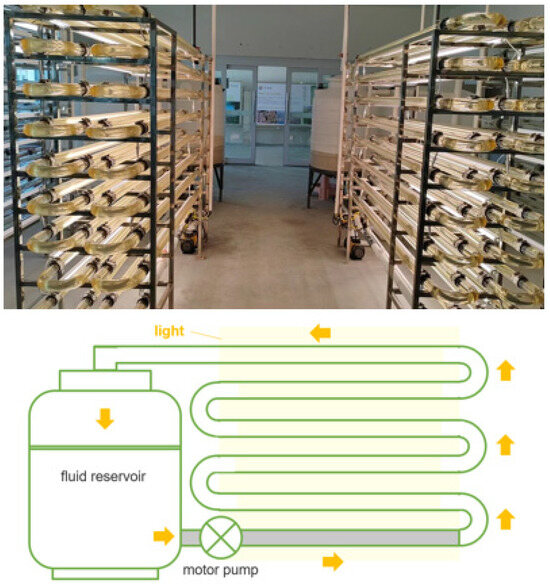 Photo and diagram of the photobioreactor system.