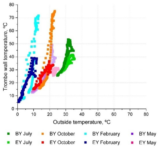 - Briga, A.; Boaventura-cunha, J.; Lanzinha, J.; Paiva, A. An experimental analysis of the Trombe wall temperature fluctuations for high range climate conditions : Influence of ventilation openings and shading devices. Energy Build. 2017, 138, 546–558. [Google Scholar] [CrossRef]