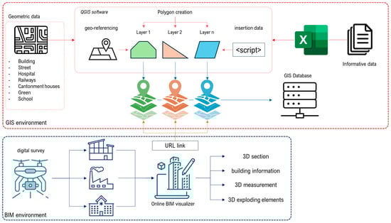 36] develop a multiscale approach based on a bi-directional integration between the two information systems, relating them appropriately and allowing easy switching between the databases of the two systems, mainly using open source (OS) tools (QGIS 3.20.3 and Dynamo 3.0.3). Kang et al. [