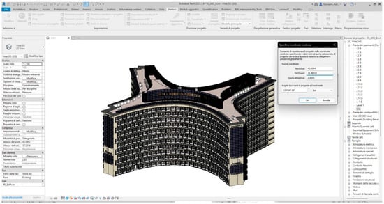 Regarding the BIM environment, the same considerations apply as for the OS methodology. It is therefore recommended that the built environment be digitized through digital surveying. However, the use of specific software for the CS approach, determined in Autodesk Revit, allows the BIM model to be geo-referenced with maximum precision in the previously identified coordinate system (