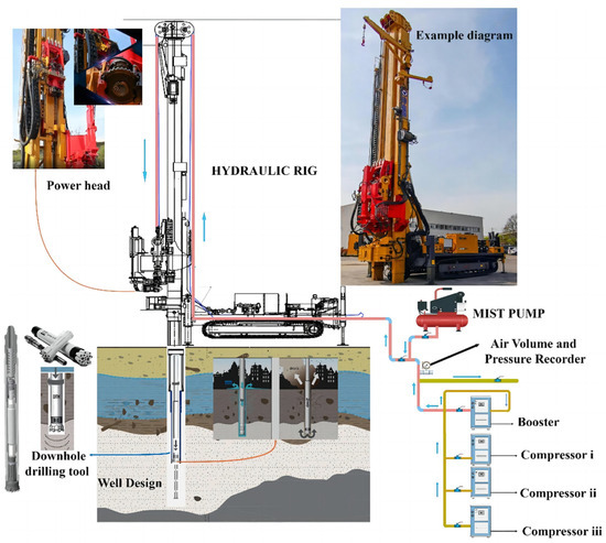 - Zhao, H.; Wang, Y.; Chen, T.; Chen, H.; Su, N.; Wang, H. Application research of air DTH hammer drilling technology in deep geothermal wells in Guizhou clastic rocks. Geol. Explor. 2016, 52, 942–949. [Google Scholar]