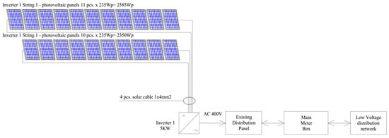 Single-line diagram of the 5 kW rooftop PV system in a residential house.
