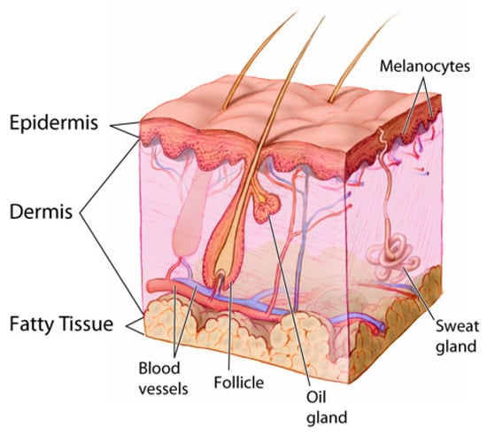 Skin anatomy showing the main layers present in skin (credits: Don Bliss, National Institutes of Health, US).