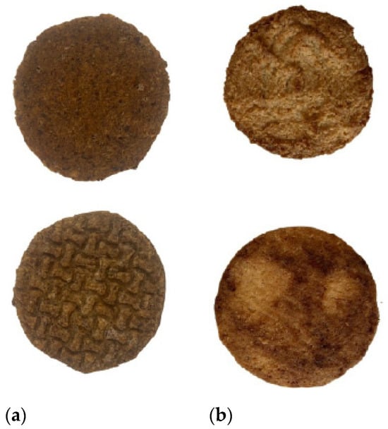 Appearance of cookies depending on their thickness: (a) thicker (10 mm); (b) thinner (5 mm).