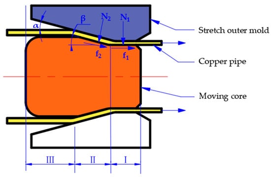 The taper angle of the floating core must be greater than the friction angle, as indicated by (4). If this condition is not met, the core will be pulled into the sizing section, leading to tube breakage.