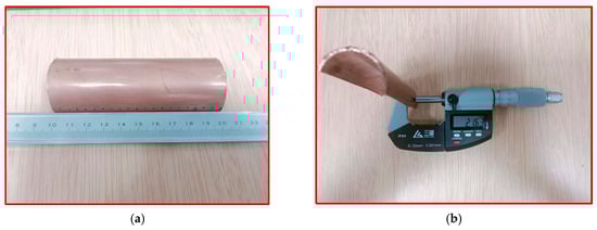 A 10 cm long section of the copper tube after joint drawing was selected and cut along the axial direction at any position. Measurement points were taken at intervals of 5 mm, resulting in a total of 20 points. The wall thickness at each of these 20 points was measured using a micrometer, as shown in