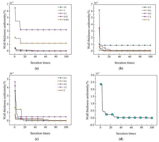 In actual production, the drawing speed is known to be 0.6 m/s. When the drawing speed is increased, both the wall thickness and wall thickness uniformity decrease. In the finite element model, when the drawing speed exceeds 0.6 m/s, both wall thickness and wall thickness uniformity show a decreasing trend. In the actual production process, measurement errors can lead to inevitable discrepancies in the measured values. As the drawing speed increases beyond 0.6 m/s, both the finite element model and actual measurements show a decreasing trend in wall thickness and wall thickness uniformity.