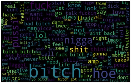 - Davidson, T.; Warmsley, D.; Macy, M.; Weber, I. Automated hate speech detection and the problem of offensive language. In Proceedings of the International AAAI Conference on Web and Social Media, Montreal, QC, Canada, 15–18 May 2017; Volume 11, pp. 512–515. [Google Scholar]