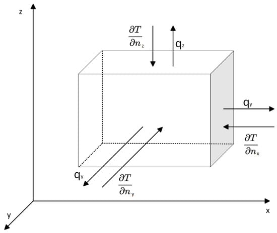 where refers to a temperature gradient in the normal direction of area A, k refers to a heat conductivity coefficient (unit: W/(m K)) that depends on the material and temperature of the selected box, and q refers to a heat flow density. Figure 1 schematic diagram describes Equation (1).