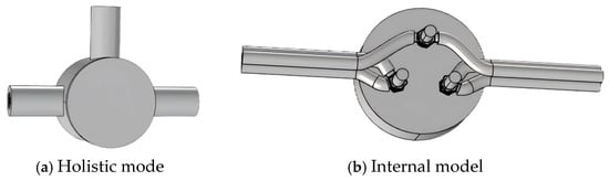 A three-way flameproof cable box for coal mines was the research object. The rated current and rated voltage were 60 A and 1140 V, respectively. The box consisted of an explosion-resistant enclosure, wiring terminals, an insulating base, and cable entry. By using computer-assisted design software, a 3D model was developed on a 1:1 scale for the box and subsequently imported into thermodynamic simulation software for numerical solution [18,19]. Figure 2 details the 3D model of such flameproof cable boxes for coal mines.