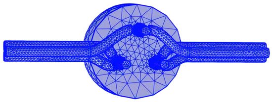 The material attribute was defined based on the material of flameproof cable boxes for coal mines. In this study, the enclosure was fabricated from cast iron. The specific heat capacity and heat conductivity coefficient were 460 J/(kg·K) and 66 W/(m·K), respectively. The insulating base was ceramic and had a specific heat capacity of 850 J/(kg·K) and a heat conductivity coefficient of 28 W/(m·K). The wiring terminals and connecting wires were prepared from copper, with a specific heat capacity of 381 J/(kg·K) and a heat conductivity coefficient of 388 W/(m·K). The simulation utilizes material homogeneity assumptions, isotropy assumptions, temperature boundary condition assumptions, electromagnetic boundary condition assumptions, and ideal geometry assumptions. Hybrid meshing was conducted to generate the meshes of the flameproof cable box model. Considering simulation requirements and the arithmetic speed of the computer, high mesh generation precision was selected for guidelines and wiring terminals, whereas mesh generation precision was set to be low for other parts [21,22,23,24]. Figure 4 depicts a schematic of mesh generation. The changes in key electromagnetic and thermal physical quantities after each mesh refinement of the coal mine blast box model were compared. The relative errors of magnetic field strength, eddy current density, and thermal physical quantities were calculated. The relative errors of the key physical quantities are less than the pre-set threshold (3%), and this meshing meets the above requirements and is considered to be mesh-independent.