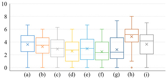 Supplementary Materials, all of the subjective variables were positively correlated with the objective acoustic variables associated with sound energy over the whole audible spectrum, with slope values ranging between 0.13 and 0.35. In general, the highest slope values were found for the relationships between the variables of irritability (a), raising the volume of the conversation (e), interrupting a phone conversation (f), raising the volume of a phone conversation (g), a noisy street (h), and annoyance (i), and the sound indicators L
