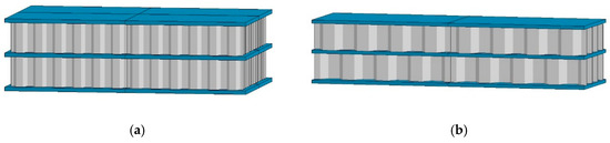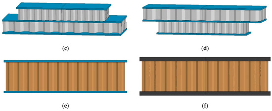 The LS-DYNA 18.2 display dynamic damage analysis software was used to simulate and analyze the 16 groups of models and 2 groups of comparative models. The six types of composite honeycomb sandwich structures are shown in Figure 3.