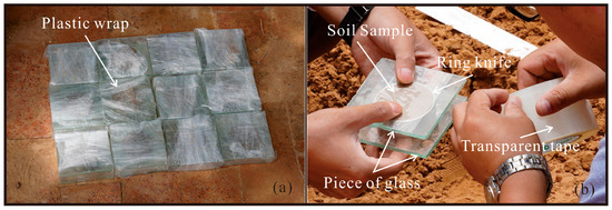 Original ring knife samples. (a) After encapsulation. (b) Packaging in progress.
