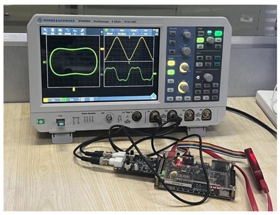 Compared to analog circuits, FPGAs provide superior computational performance and parallel processing capabilities, enabling efficient computation of intricate mathematical models [18]. The design flexibility and modifiability of FPGAs also make it easier to map complex equations, such as Duffing equations, to hardware in a more efficient manner [19,20]. So, we decided to verify the hardware circuit on the FPGA platform. Nowadays, the Duffing oscillator system has been widely used in the field of detection. Li et al. proposed a method of detecting intermittent chaos based on a variable step size dual Duffing oscillator differential system to detect the line spectrum of ship-radiated noise under the ocean background noise. Compared with the conventional Duffing oscillator detection method, this method can obtain a better signal-to-noise ratio [21]. Yan et al. implemented an improved Duffing chaotic system for periodic weak signal detection and investigated dynamical characteristics. The advantage of the improved Duffing system for wide area detection is demonstrated by analyzing the corresponding Lyapunov exponent spectrum and bifurcation diagram [22]. Rajagopal et al. address a new modified hyperchaotic van der Pol–Duffing snap oscillator. Various dynamical properties of the proposed system are investigated with the help of Lyapunov exponents, stability analysis of the equilibrium, points and bifurcation plots, and it is implemented in field-programmable gate arrays [23].
