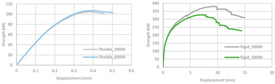 The main originality of the proposed model is to include a regularization in compression. It is, thus, worthwhile to examine the impact of fracture energy in the case of a rigid stud [15] and a flexible stud [3]. To study the impact of Gfc in both stud cases, two values of Gfc (an initial one and a lower one of 30,000 N/m) are considered (Table 3).