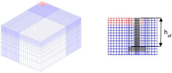 - Ožbolt, J.; Eligehausen, R.; Periškić, G.; Mayer, U. 3D FE Analysis of Anchor Bolts with Large Embedment Depths. Eng. Fract. Mech. 2007, 74, 168–178. [Google Scholar] [CrossRef]