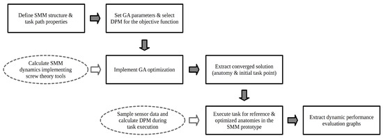 In this work, the offline optimization methodology presented in [28] was implemented. An overview of the methodology is illustrated in Figure 2. The proposed framework comprised four major steps. The definition of the SMM and the desired task path, the optimization algorithm implementation, the real-life task execution, and the performance evaluation.