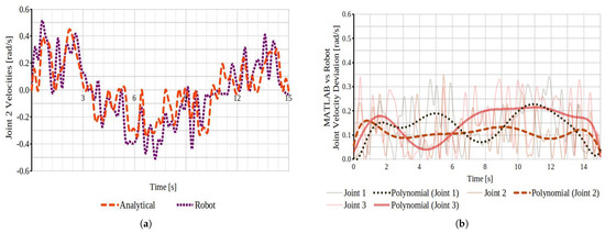 Joint velocities’ investigation for optimized EMI CP anatomy (ID: 1, task path: 16). (a) Joint 2 velocity. (b) Joints’ velocity deviation.