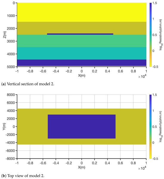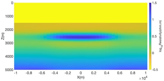 Model 2: 1.5 km water layer over layered sediments and a resistive target with 100 Ω·m.