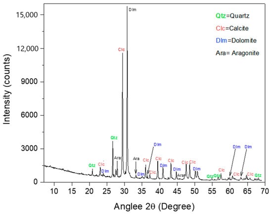 Finally, the most representative XRD spectrum for the “Mendicino” stone is shown in Figure 5.