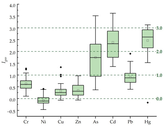 4.4.1. Evaluation Results of the Geo-Accumulation Index Method