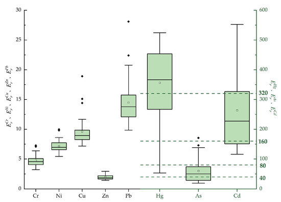 Table 8. The evaluation results of the potential ecological risk index method of heavy metals in the study area.