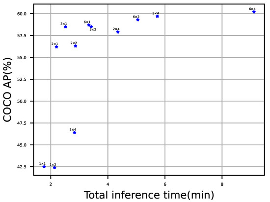For the evaluation of both datasets, we used the COCO Metric (including , , , , , and ) as the evaluation standard, as it provides comprehensive and fine-grained performance analysis. The COCO Metric integrates different IoU thresholds (.50:.05:.95) into the overall average precision (), where the IoU (Intersection over Union) measures the overlap between the predicted bounding box and the ground truth, with a higher IoU indicating more accurate localization. and represent the average precision at IoU = 0.50 and IoU = 0.75, respectively, capturing the model’s performance under both basic and high-precision requirements. , , and evaluate the detection ability for small, medium, and large objects, ensuring a balanced performance across various object scales. In addition, we compared the model parameters (Params) used on the COCO dataset (Table 1), which represent the number of trainable weights in each model.