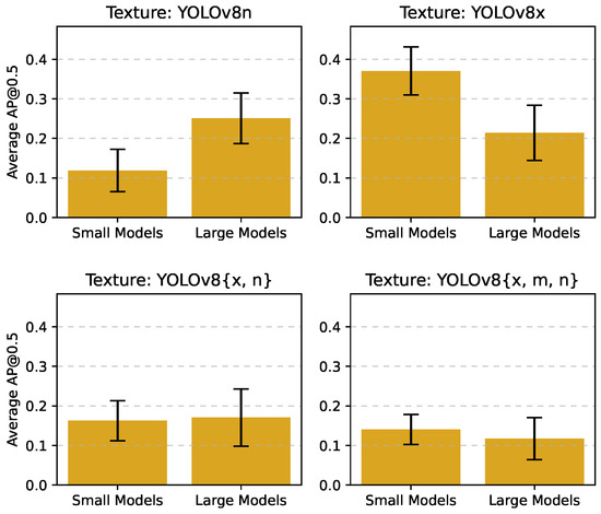 To visualize this comparison, we present Figure 4, which shows the mean AP@0.5 of the textures when evaluated on small versus large models.