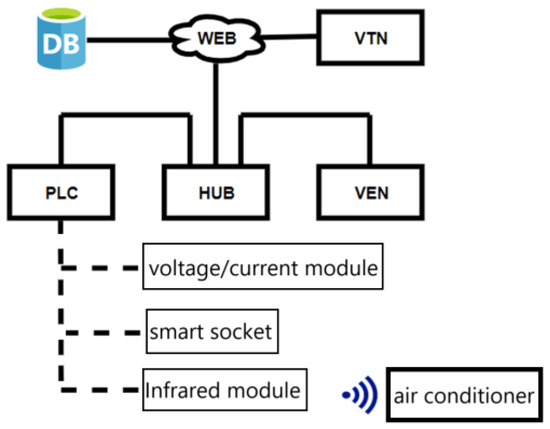 Therefore, a cost-effective automated DRC compliant with the OpenADR 2.0a protocol, which could receive, analyze, respond to DR instructions, and process necessary control strategies, is essential for executing the decisions obtained from those demand response algorithms proposed in the abovementioned literature. The ability to use infrared remote control is essential to a successful ADR program, as is the participation of many old-installed air conditioners in homes and office buildings. The aim of this paper is thus limited to developing a VEN with a low-cost automated DRC that can non-invasively measure current and voltage, calculate real power, directly control load switching, and control home appliances with the function of infrared remote control by emitting infrared remote control codes, and use Power Line Communication (PLC). The main contributions of this paper are summarized as follows.