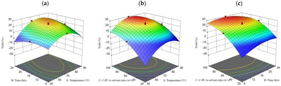 | Run | A: Temperature (°C) | B: Time (h) | C: C-PC to Solvent Ratio (w/v) | Yield (%) |