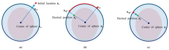 3.1. First Phase: Approach from the Initial Position to the Spherical Surface