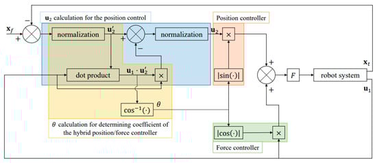 For the force control of the proposed system, we selected the hybrid position/force control strategy, which controls the robot position and the interaction force at the same time by confining each control orientation perpendicularly. It is selected not only to maintain the contact between the coil and head, but also considering the position control to compensate the error. The following paragraphs describe how to realize this strategy.