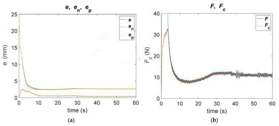 Values during the experiment when the variable desired force is applied: (a) , and ; (b) F and .