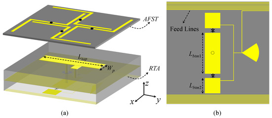 Element of the proposed dual-polarized AFST in (a) perspective view and (b) top view.