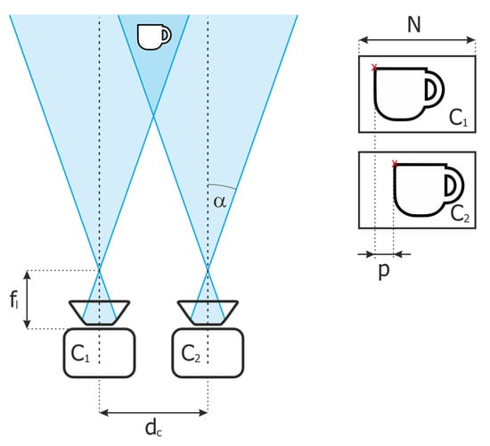 The final element is the calculation of the distance of the object from the cameras. This was calculated based on Equation (1):