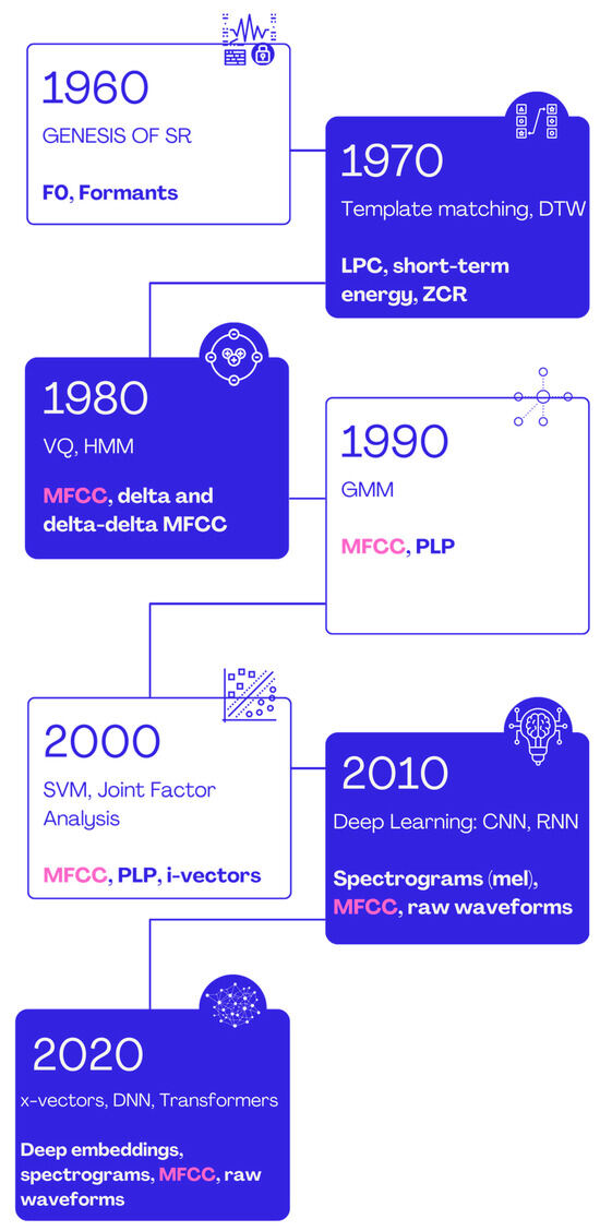 - Mermelstein, P. Distance Measures for Speech Recognition, Psychological and Instrumental. Pattern Recognition and Artificial Intelligence. 1976. Available online: https://www.semanticscholar.org/paper/Distance-measures-for-speech-recognition%2C-and-Mermelstein/a086b8bcaf7a3ef2eee498ada4481c33a5e43fcf (accessed on 19 June 2024).