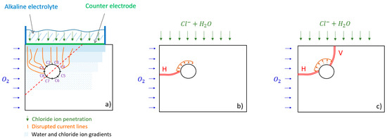 - Zhang, W.; Chen, J.; Luo, X. Effects of impressed current density on corrosion induced cracking of concrete cover. Constr. Build. Mater. 2019, 204, 213–223. [Google Scholar] [CrossRef]