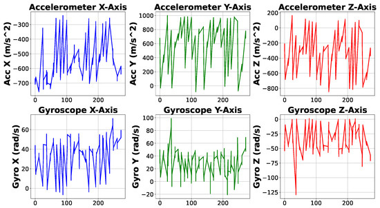 - Extracting statistical features, namely mean, maximum, minimum, and standard deviation, from each time window of the IMU data, and storing them in a database, which, in our implementation, is InfluxDB (https://www.influxdata.com/ accessed on 1 December of 2024).