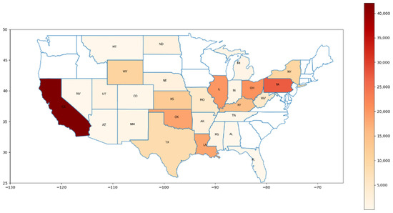 Documented orphan wells in the USA (225,287 wells). The data were collected from each state commission’s website.