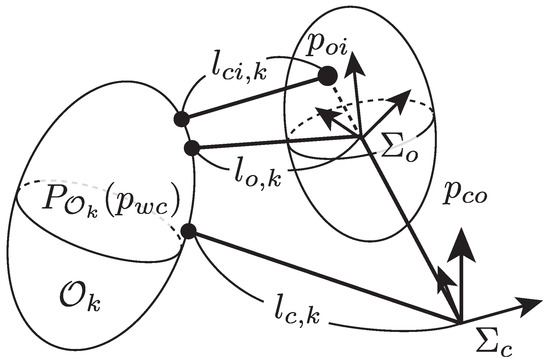 Let and denote translational velocities and and denote the angular velocities of the camera robot and the target object, respectively. Then, the rigid body motions are given by