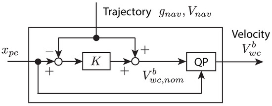 Based on this lemma, the controller that guarantees the safety of the system (21) is synthesized. Let be a feedback controller. Then, inputs from the controller can be minimally modified so that the modified input u satisfies even if . The modified controller can be obtained by solving the quadratic programming (QP) problem: