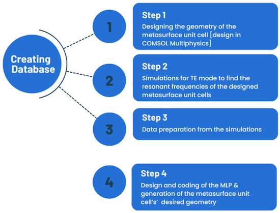 For the purposes of the proposed intelligent unit cell geometry generation tool, a neural network was used: the multilayer perceptron. The design process methodology for a unit cell generation tool metasurface for microwave energy harvesting is shown in Figure 1.