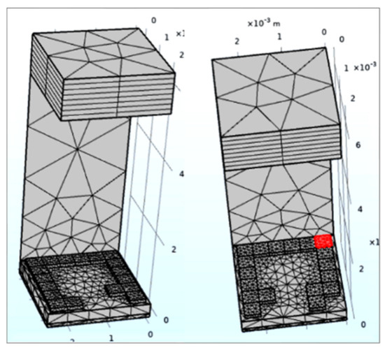 Mesh of designed metasurface unit cell in Comsol Multiphysics.