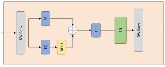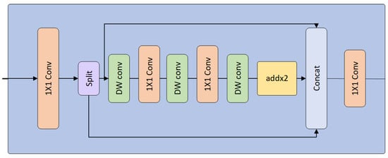 In optical satellite images, ship targets are extremely small, often only a few pixels in size, making target detection highly susceptible to noise interference. To better represent these targets, we introduce a Compact Inverted Block (CCIB) to enhance the pyramid feature representation capability within the network. The detailed structure of CCIB is shown in Figure 6. CCIB utilizes low-cost depth-wise convolutions for spatial integration and low-budget point-wise convolutions for channel fusion. While reducing the computational burden of the model and improving operational speed, it ensures that the model’s accuracy remains unaffected and enhances the representation of both local and global information.