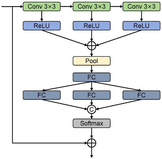 where represents the input feature shape, and L denotes a fully connected layer. We use concat operation to add up the attention weights of the three channels, and then generate the final attention weights.