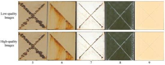 Some low-quality and high-quality images of corrosion rating class from 5 to 9 in our dataset.