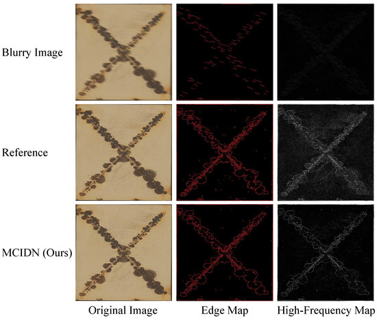 Image deblurring is a fundamental low-level vision challenge encountered across various fields, including remote sensing, medical imaging, photography, autonomous driving, and underwater imaging [4,5,6,7,8]. Traditional non-blind deblurring assumes a known blur kernel and employs techniques like Wiener filtering and Richardson–Lucy deconvolution [9,10]. Traditional blind deblurring, where both the blur kernel and the sharp image are unknown, relies on manually crafted priors such as L0 sparsity, low-rank, and dark channel priors [11,12,13,14]. These traditional methods often involve complex optimization processes and suboptimal performance.