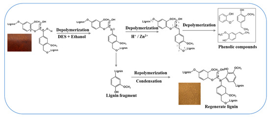 Mechanism of ChCl:ZnCl2 DES-assisted KL depolymerization.