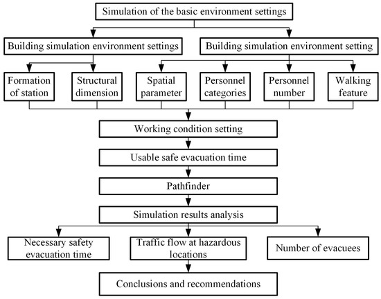 This paper presents a simulation case study focused on the emergency evacuation times of subway passengers, utilizing a segmented and multi-faceted approach. Through the simulation of various emergency evacuation scenarios at Wulukou station, three distinct evacuation times were identified within the theoretical and simulation model. A model representing the facility layout and passenger flow distribution within the subway station was developed and subjected to simulation. This model incorporated spatial parameters, categories, walking characteristics, and the spatial and temporal dynamics of passenger flow distribution as input variables, leading to the establishment of a real-time visualization evacuation simulation model. The established simulation model can assist in the improvement in the subway’s emergency evacuation capability.